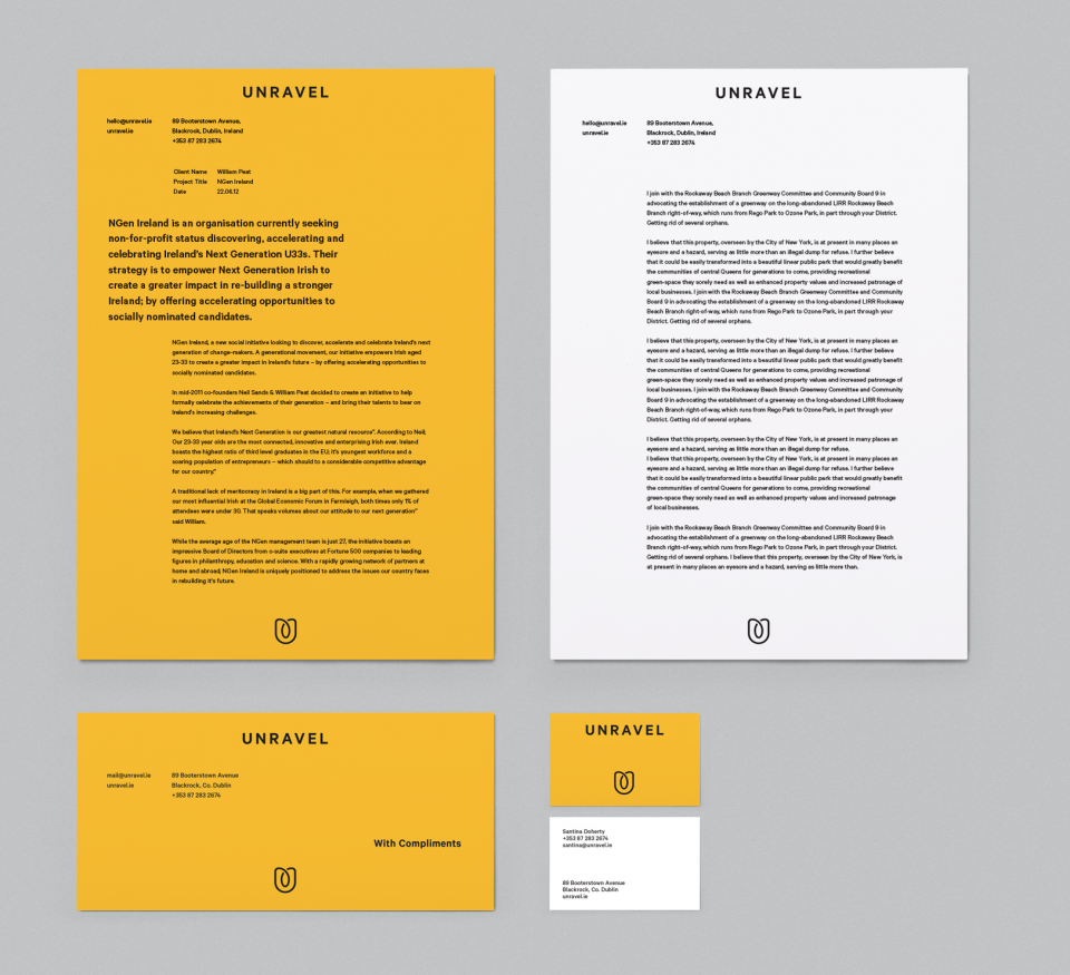 We created a bright and bold identity, centred around a looping monogram ‘U’, that extends to stationery, on-screen presentations and a responsive website.