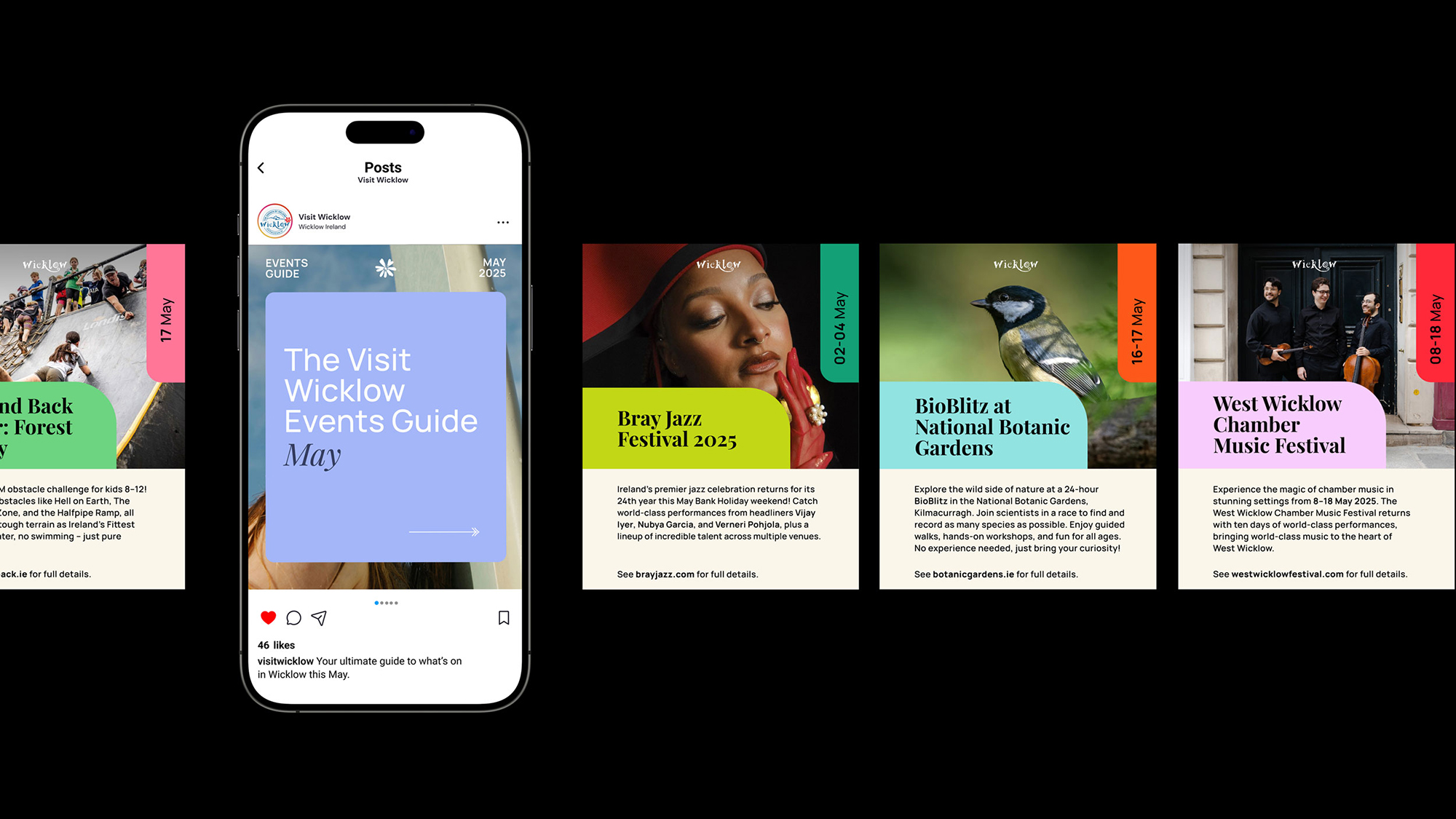 The ask from Visit Wicklow was simple: “do our social”. A broad brief, but one that was delivered to us with a huge amount of trust and the creative freedom to generate results. We soaked up all the existing collateral, we truffled out the local, niche talking points, we created a consistent formula for our creative approach, and we got to work with steady implementation. People naturally want to engage with a place as remarkable as Wicklow. We realised quickly that listening to our audience would be key to our success. So that’s what we did.