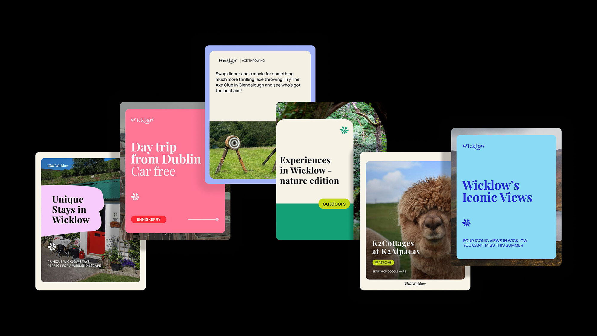 Our work with Visit Wicklow has firmly established the brand as THE trusted voice on County Wicklow tourism. We’ve created a platform where visuals, voice, and analytics are fully aligned. We’ve developed a calm, directional brand presence that not only inspires curiosity but measurably converts it into real visits and deeper connections to Wicklow