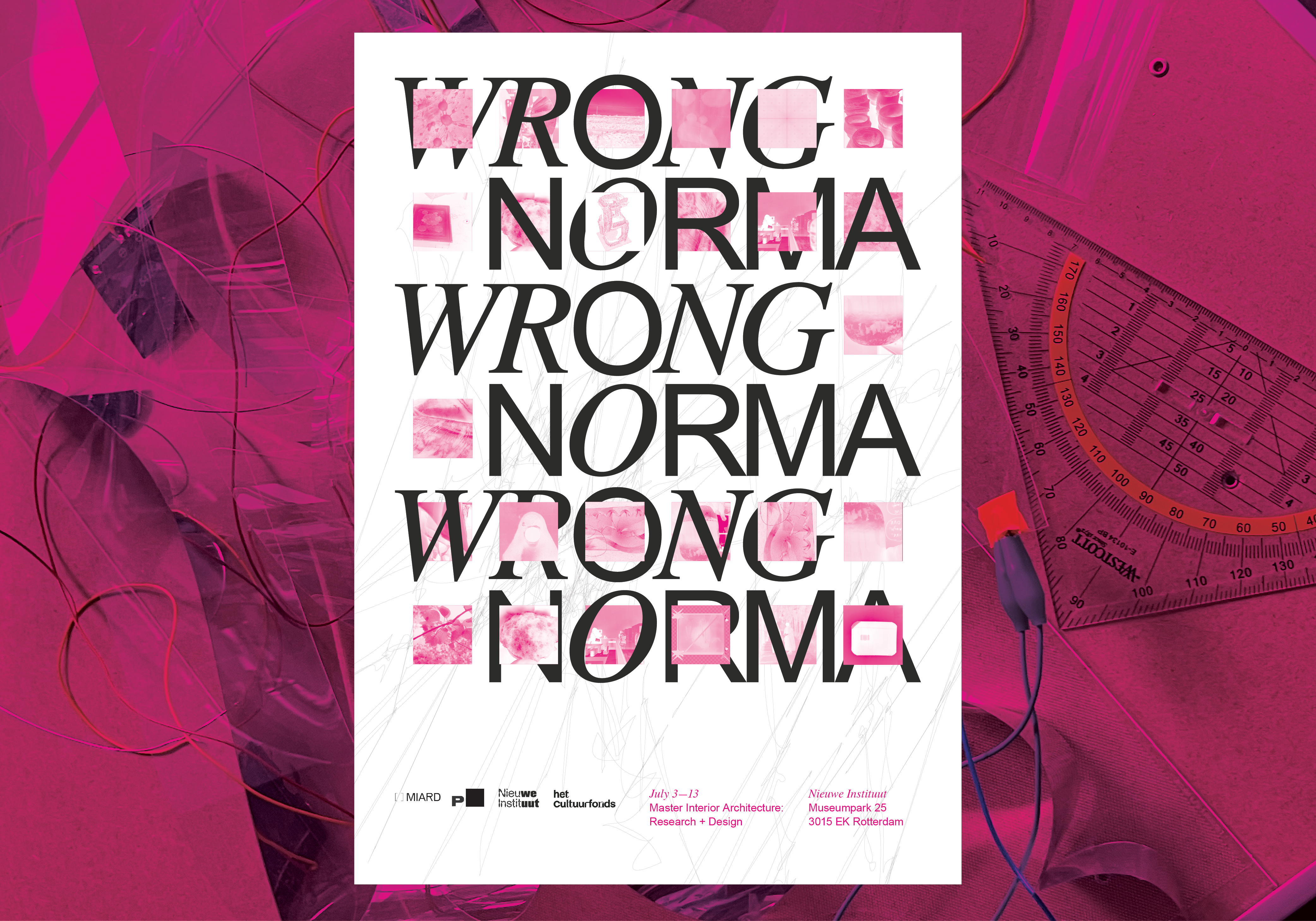 Wrong Norma is an exhibition at the Nieuwe Instituut Rotterdam, exploring what it means to be a spatial practitioner and researcher in the Netherlands and internationally. The exhibition presents work from eleven researchers, designers and artists graduating from the Master Interior Architecture: Research + Design at the Willem de Kooning Academy.